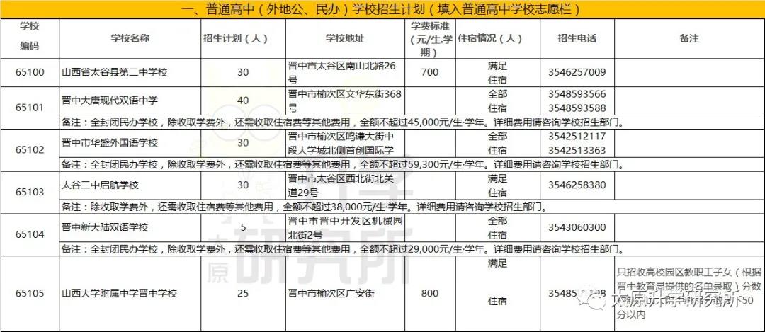学校编码前面带“★”符号的学校为省级示范高中学校,学校编码前面带“☆”符号的学校为市级示范高中学校,学校编码前面带“◆”符号的学校为外市(晋中市)在太原招生的普通高中学校。