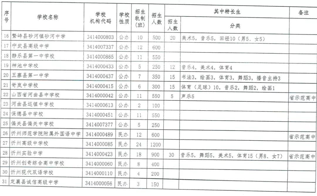 附件:1.忻州市2020年普通高中学校分校招生计划