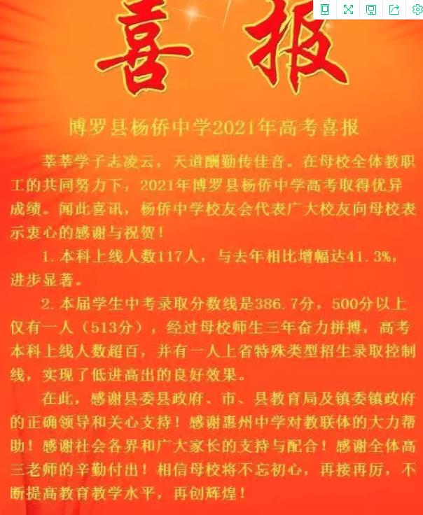 博罗杨侨中学2021高考成绩喜报、本科特控线上线人数情况