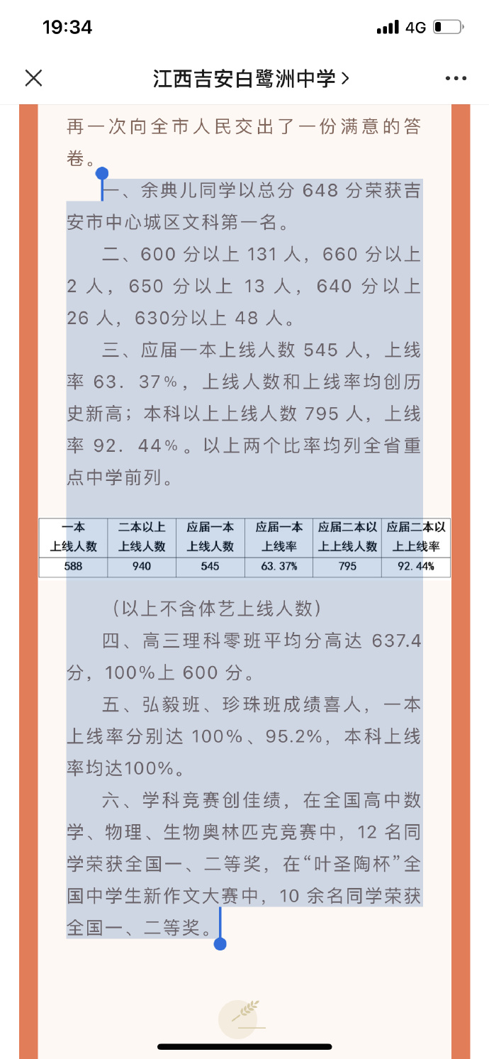 2021吉安白鹭洲中学高考喜报成绩、本科一本上线人数情况