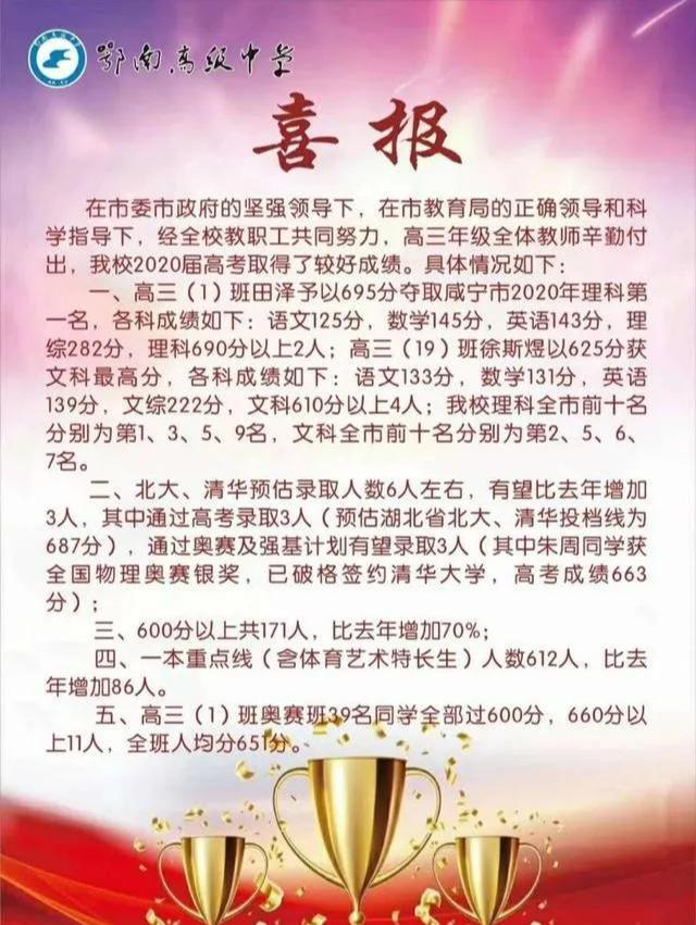 2020鄂南高中高考喜报成绩、一本二本上线人数情况