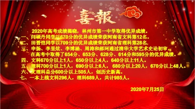 林州市第一中学2020年高考喜报