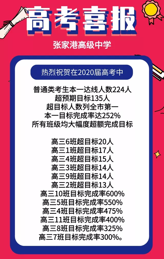 2020张家港高级中学高考喜报成绩、本科一本上线人数情况