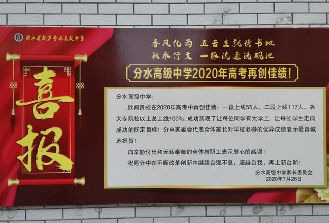 2020桐庐分水高级中学高考喜报成绩、本科一段线上线人数情况