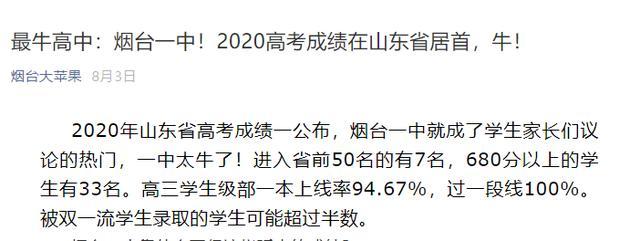 2020烟台一中高考喜报成绩、本科一段线上线人数情况