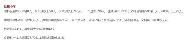 2020滁州中学高考喜报成绩、一本二本上线人数情况