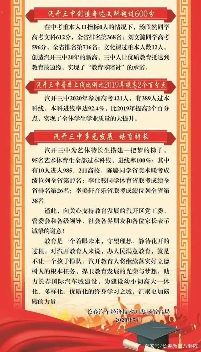 2020长春市汽车三中高考喜报成绩、本科一本上线人数情况