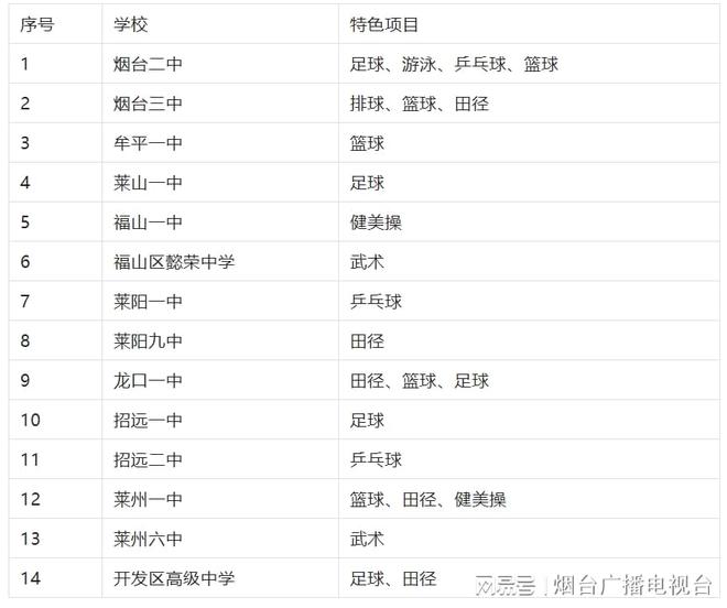 烟台市省、市级体育专项特色高级中学的学校及项目