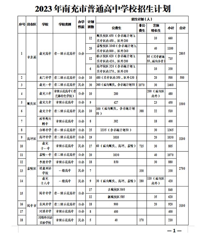 1.公办学校:省级示范高中、西华师大附中可面向全市招收一定数量的考生。