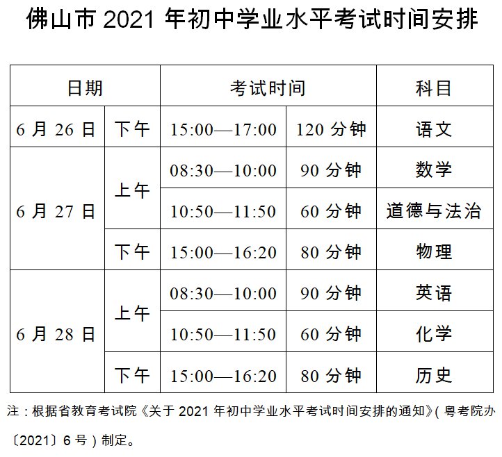 2021佛山中考时间日期安排
