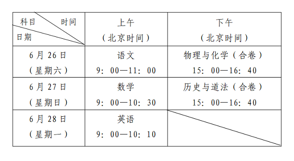 1.全市中考科目:语文、数学、英语、物理与化学(合卷)、历史与道法(合卷)、体育。