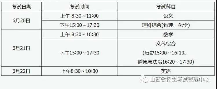 2021山西中考时间日期安排