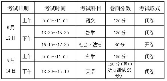 2022缙云中考总分满分、各科目分值、考试时间日期安排