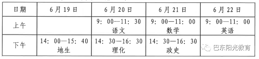 文化课考试实行全州统一命题、统一考试、统一评卷,均实行闭卷笔试。考试时间安排如下∶