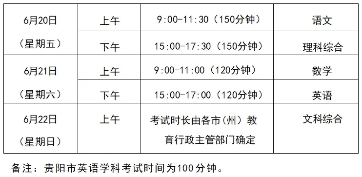 2025黔西南中考时间日期安排